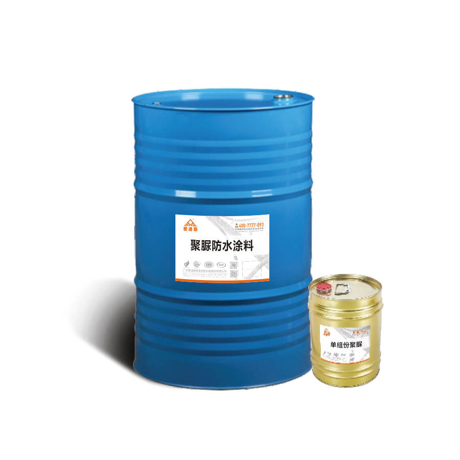單組分聚脲涂料,基于單組分特性無需配比,開桶即用,無需專用聚脲施工配套設備,同時也可以用普通噴涂設備施工。由于其獨特的化學結構,以高性能封閉潛固化聚脲樹脂和異氰酸酯預聚物為主要成膜物,成膜涂層中含有大量脲鍵、縮二脲鍵、氨酯鍵以及氫鍵結構,使得高分子鏈段之間內聚力大。這些賦予了涂層優異的耐磨、耐老化(三十年以上的使用壽命)、防水、高強度、耐根刺、高附著力(瓷磚及玻璃面施工無需打磨)等特殊性能,能全面保護混凝土及其它物品免受水分和外界各種腐蝕因子的侵蝕。